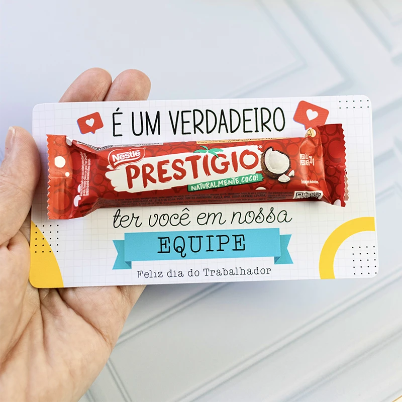Aquele mimo perfeito para o Dia do Trabalhador! Personalizamos o rodapé com a cor da empresa + logotipo. Este modelo já acompanha os chocolates + embalagem transparente. Prontinho para presentear.