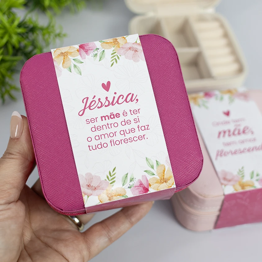Nosso lindo porta jóias é sucesso em todas as datas! Ele é portátil, ideal para o dia a dia, mede 10cm. Acompanha essa tag de papel cartão com dizer e impresso em todos os lados, podemos incluir o logo ou nome de quem está presenteando.