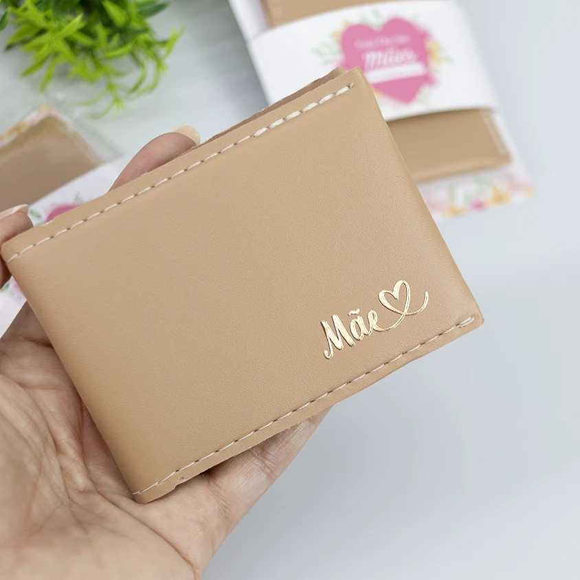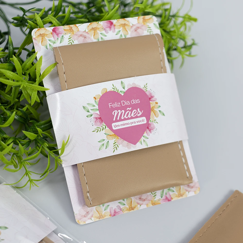 Aquele mimo super útil para presentear as mães colaboradoras. Nossa carteira slim é feita em courino com a aplicação da palavra "Mãe" em dourado. Acompanha o card personalizado, onde podemos incluir o logo.