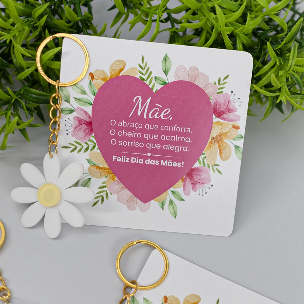 Chaveiro de margarida feito em acrílico colorido + cartão personalizado e embalagem transparente. Um mimo delicado para este Dia das Mães, podemos incluir o seu logo. Acompanha embalagem transparente.